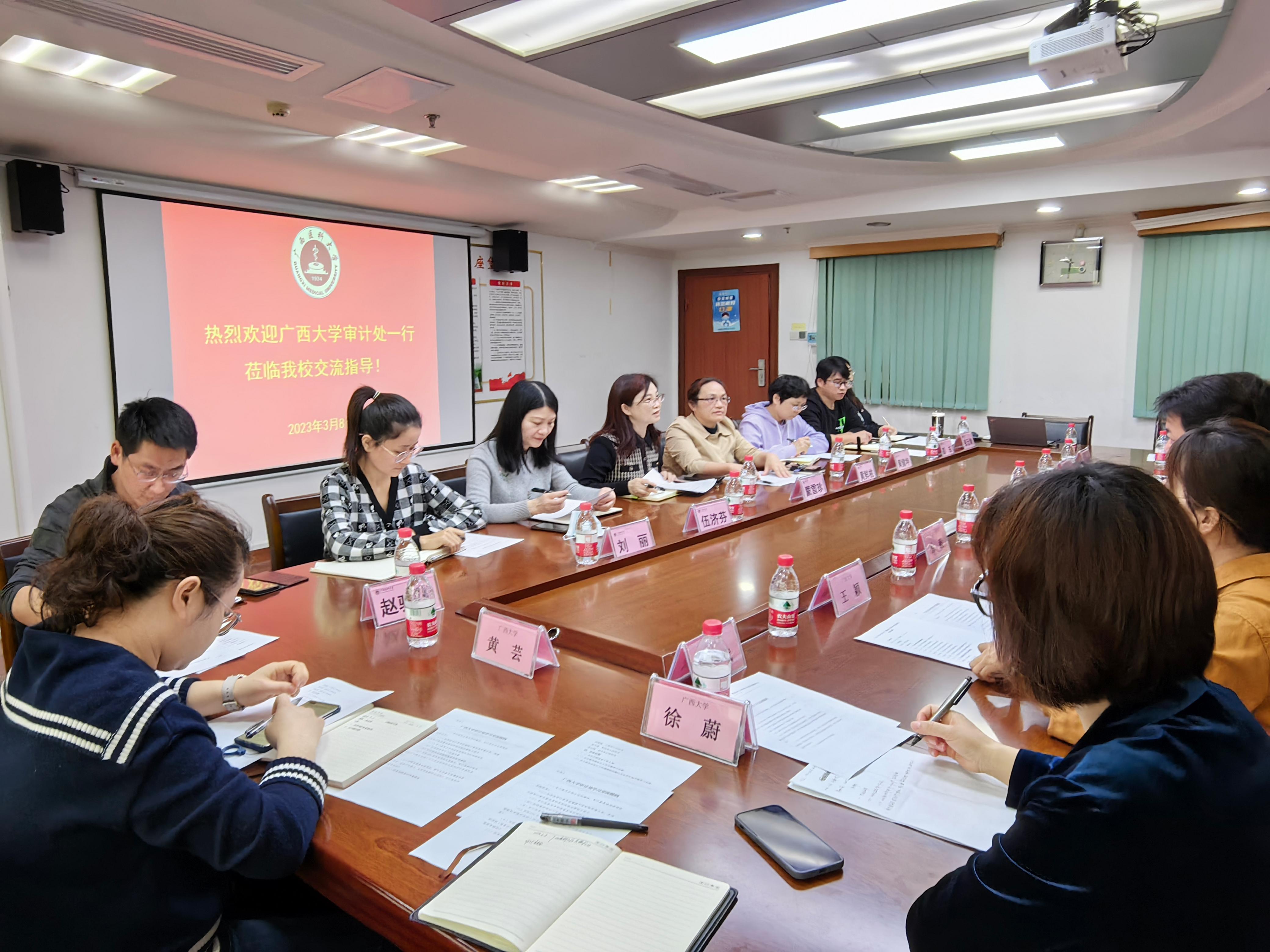 3月8日上午,由付文科副处长带队,我处一行九人,赴广西医科大学审计处开展交流座谈活动。