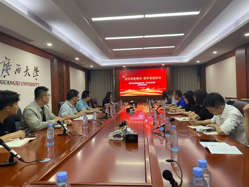 为进一步增强纪检监察、审计人员的保密意识和纪律意识,切实防范失密泄密风险,为学校“双一流”建设和高质量发展提供坚实安全保障,5月27日,驻校纪检监察组党支部、审计处党支部联合开展“强化保密意识 筑牢保密防线”主题党日活动。校党委副书记、自治区纪委监委驻广西大学纪检监察组组长、校纪委书记金顺南出席活动。